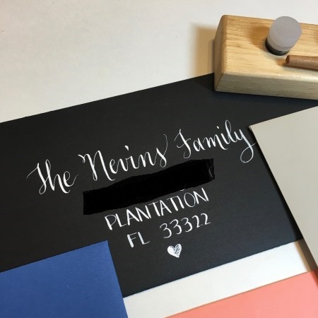 I was REALLY happy and impressed when I got the fancy white calligraphy on the above black card. I thought it was a machine!! So much talent!