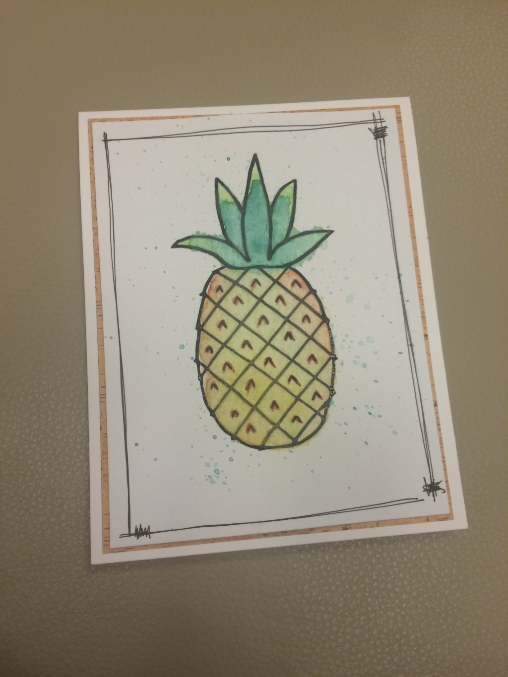 Given the many meanings of pineapples, I don’t think you can go wrong giving someone a pineapple watercolor card. I added some splatter and a handdrawn border to keep it light and cheery.