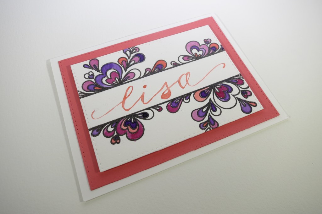 I bought a stamp set a few years ago that I keep going back to- it’s fun, whimsical, and can be used for so many different types of cards. The pattern reminds me of paper quilling which is probably why I love it so much!