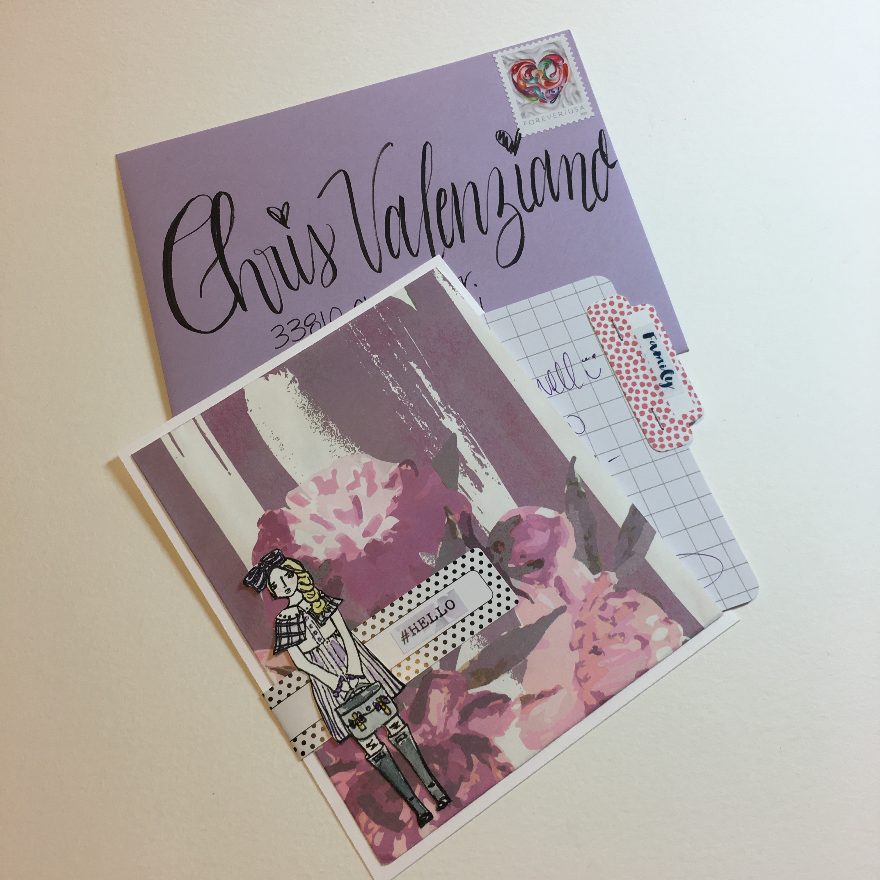 My aunt sent me a thoughtful package of stationary and craft supplies. I immediately opened everything up and made her a thank-you card 🙂