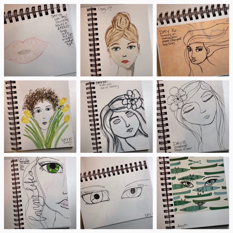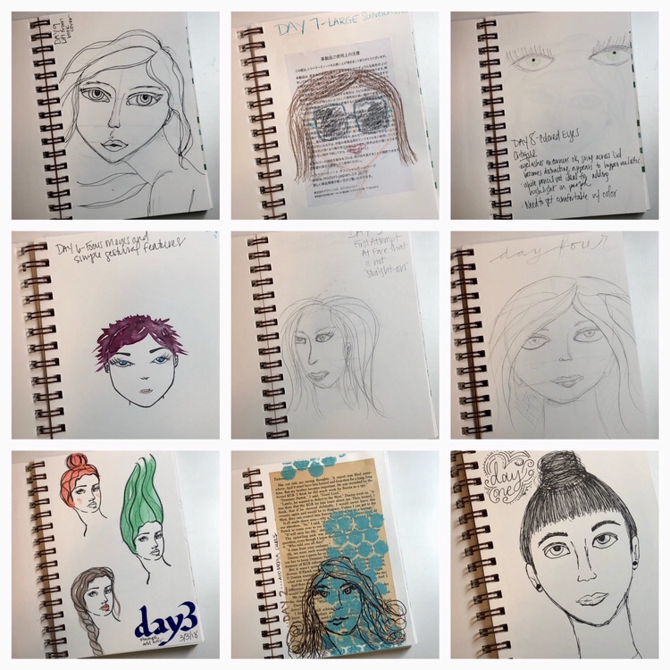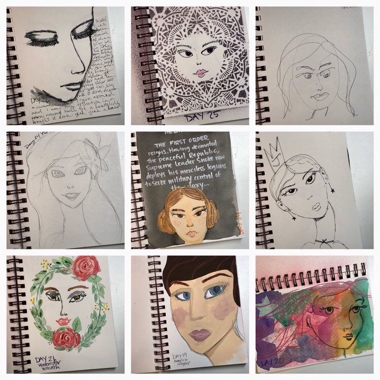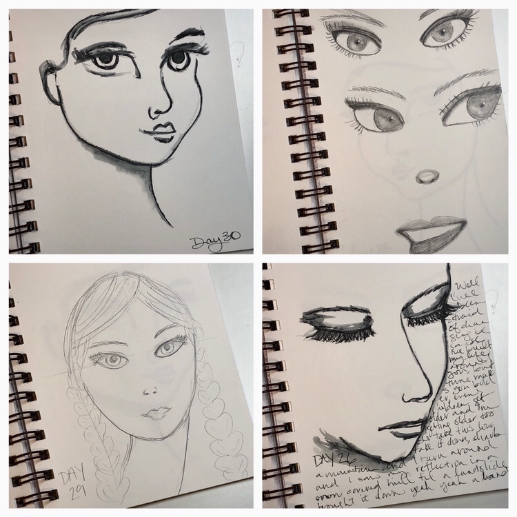Drawing is so outside of my comfort zone. Drawing faces is even farther away from that. I really wanted to push myself and thought a daily challenge would be a good way to do it. I was mainly inspired by Jane Davenport’s “Beautiful Faces” book but found a lot of inspiration from YouTube artists as well. I don’t Love ever piece, but I love the book as a whole and feel a lot more comfortable drawing little characters in my sketchbook.