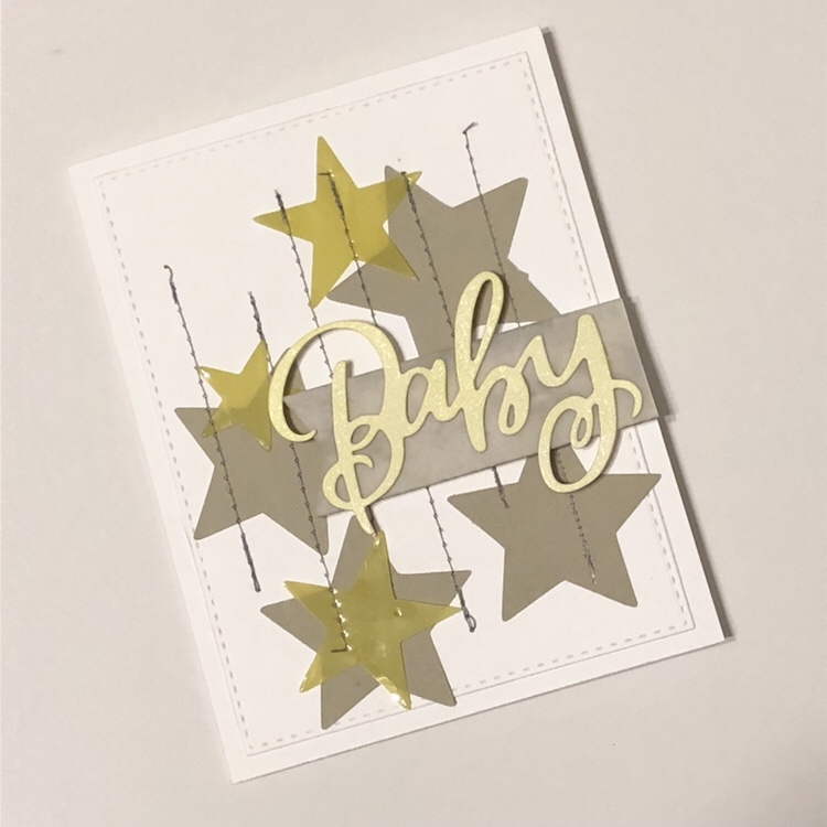 I used the same “baby” die cut sentiment on all, some of the same techniques, but ultimately created 4 very different cards!