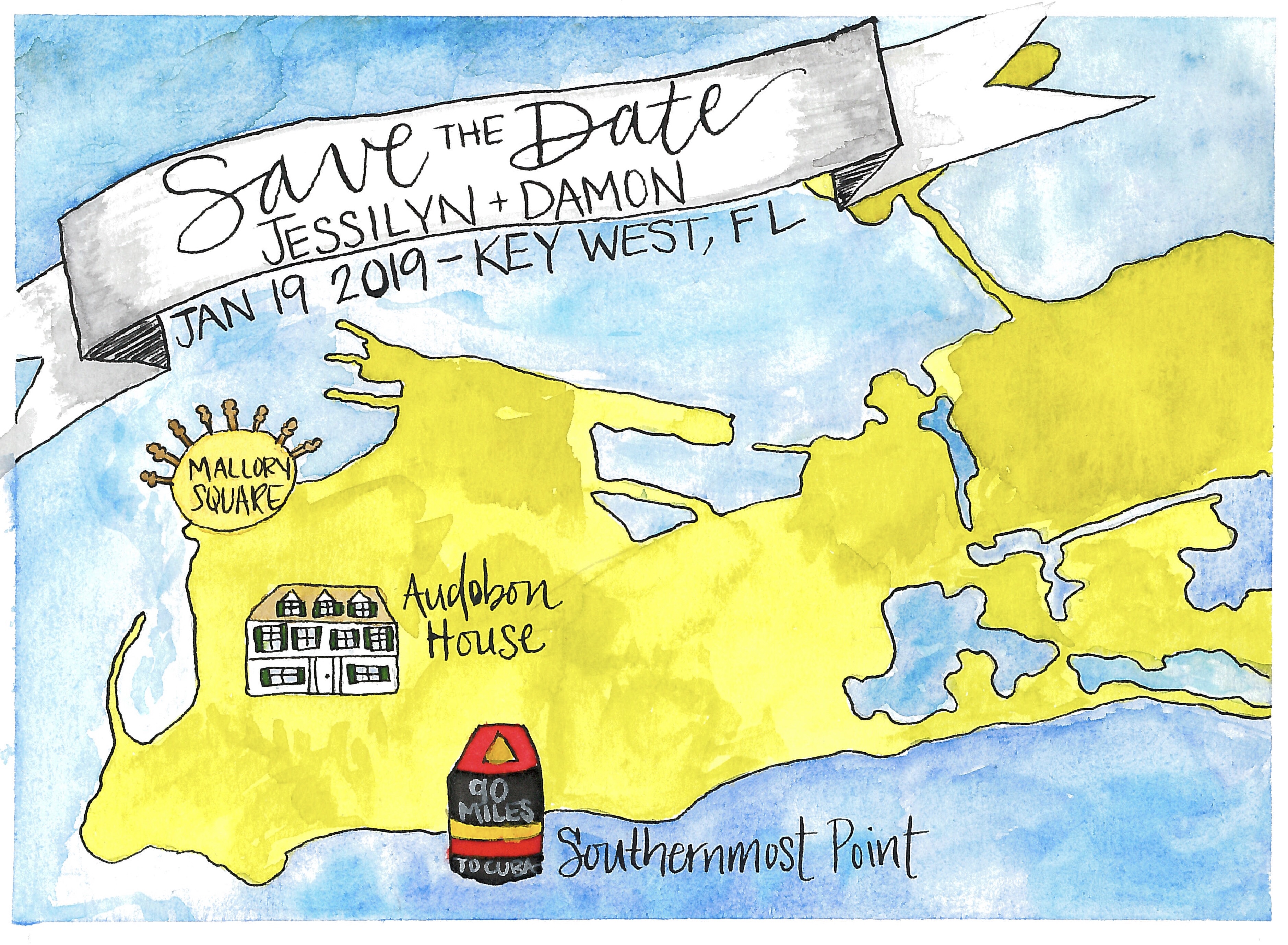 My little sister is getting married, so I’m back in the wedding invite business as a result 😂. The first project- a hand illustrated, watercolored postcard of Key West for her save the dates!